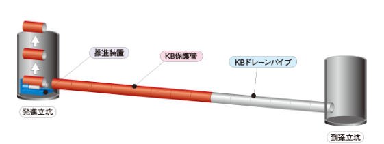 発進立坑まで掘削機が自走して引き戻れる「KBドレーンリターン工法」を使用する事により、到達立坑が不要になりました。 詳しくは、ホームページ「お問い合わせ」よりお電話、メールにてお問い合わせください。