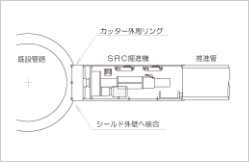 SRC施工は到達部内側への頭出しをしない施工方法です。掘進機管内側から接続作業を行うことから、共用中の管路や高土被りなどの条件下で、安全性の高い接続作業が行えます。